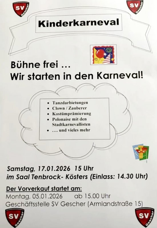 AUSVERKAUFT - Kinderkarneval SV Gescher - AUSVERKAUFT