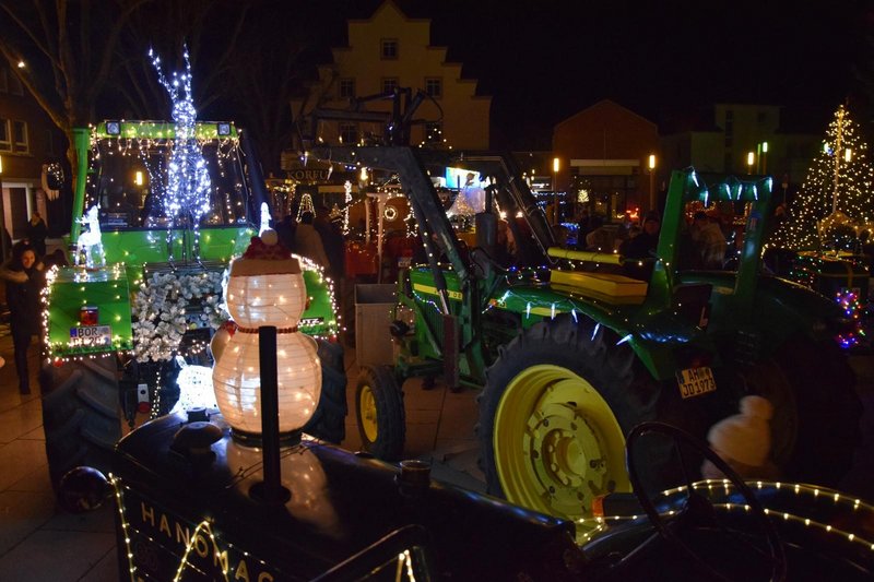 Der Treckerkorso startet gegen 16.30 Uhr auf dem d.velop-Parkplatz und fährt durch Gescher. Ab ca. 19.00 Uhr stehen die Trecker auf dem Rathausvorplatz und in der Hauskampstraße.